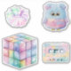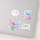 Adesivos retrorreflectores com uma coleção de favoritos pastel dos anos 80 e 90, incluindo cubo de jogos, e muito mais.