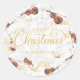 Estes elegantes adesivos de Natal com o tema da música apresentam um padrão violino entrelaçado com fitas douradas de fitas musicais em uma sutil textura de fundo de mármore, com o clássico Feliz Natal, e modelo de personalização para seu nome ou outro texto.