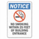 his official "NOTICE NO SMOKING WITHIN 25 FEET OF BUILDING ENTRANCE" sign is designed for clear and mandatory communication of smoking policies. Featuring a prominent blue "NOTICE" header, a universal no-smoking symbol, and bold text, this sign ensures high visibility and compliance. It is essential for businesses, public facilities, and institutions to maintain a smoke-free perimeter around entryways, promoting clean air and a healthy environment for all.
