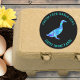 Colorida, destaque o rótulo de produto "ovos de galinhas criadas ao ar livre", com detalhes comerciais. Fácil de personalizar a tipografia moderna de escrita manual em teal usando a modelo. Ilustração de pato colorida moderna em cores brilhantes, obra de arte original única da artista Catherine Sweetman