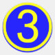 Adesivo número 3 num círculo, fundo azul