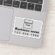 Retângulo o adesivo de vinil que você pode personalizar para colocar seu número de telefone comercial para clientes ou clientes que o encontrem facilmente quando precisarem ligar para você para fazer seus pedidos ou fazer perguntas sobre seus produtos ou serviços. Você pode usá-lo como material de marketing para anunciar sua empresa ou para promover seu nome de marca. Você também pode usá-lo como acessório do material de embalagem do seu produto. Adesivo de vinil personalizável que pode ser utilizado para criar reconhecimento do nome da marca. As cores design são textos pretos em fundo de cinza. Para personalizar este adesivo, carregue o logotipo da sua empresa, digite o nome da sua empresa e o número de telefone. Após carregar o logotipo e digitar textos, verifique a aparência. Se a aparência lhe agrada, você pode colocar seu pedido agora. Se precisar redimensionar e mover o logotipo e as mensagens para o ajustado neste adesivo ou no tamanho que você escolher, mude na ferramenta design. Você também pode alterar a cor do plano de fundo, a cor da fonte e o estilo da fonte na ferramenta design.