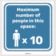 Número máximo de placas pessoas para espaços fechados. Ícone vetor com cores personalizadas. Cor de fundo personalizada. Texto personalizado.