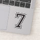 Vinheta número sete. Fonte da faculdade de esportes em preto. O alfabeto completo e os números 0-9 estão disponíveis.
