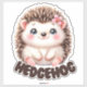 Este grande adesivo apresenta um ouriço encantador, estilo cartoon, com uma aparência macia e lisa. O ouriço é ilustrado sentado com suas pequeninas patas visíveis e um sorriso doce e contente no seu rosto. Suas colchas são renderizadas em tons castanhos macios, e seu rosto e corpo são uma cor creme-claro, dando a ele um fofinho e um aspecto acessível. O ouriço tem olhos brilhantes e largos, bochechas cor-de-rosa, e uma flor rosa enfeitando sua cabeça, acrescentando à sua beleza. Abaixo do ouriço, a palavra "HEDGEHOG" é escrita a negrito, em letras lúdicas, melhorando a design geral de crianças.