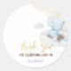 O convite para o chá de fraldas bonito apresenta ursinho azul, estrelas e nuvens.