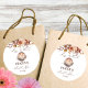 O amor está preparando o café etiqueta de agradecimento personalizada impressa de chá de panela de outono, modelo de adesivos personalizados com monograma para chá de panela com rosas marrons e flores de outono, xícara de cappuccino