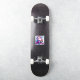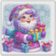 Vestido em uma roupa roxa vibrante adornada com flores, uma personagem alegre guarda presentes coloridos contra um pano de fundo de neve.