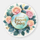 Um adesivo romântico de casamento com texto elegante de guião de folha de ouro, rosas pastel, folhas de eucalipto e um fundo de cor aquosa macia. Perfeito para convites de casamento, favores e etiquetas de obrigado.