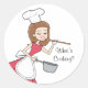 Bela vareta com uma dona de cozinha. Este é um adesivo de excelente para qualquer amante culinário, ou seria uma adição de excelente a qualquer festa tematizada de chef infantil. Muitos estilos e produtos de cartoon de chef disponíveis em zazzle.com/shopdesigns.