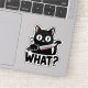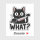 Este adesivo de gato atrevido é perfeito para quem gosta de um pouco de humor negro! Com um adorável gato preto segurando uma faca ensanguentada e a pergunta simples, mas eficaz "O quê?", este design é uma maneira divertida de expressar seu lado travesso. Feito de vinil durável, este adesivo é ótimo para laptops, garrafas de água e muito mais.