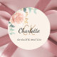 Um fundo elegante de cor creme. Decorado com folhas de eucalipto, rosa, folhagens, folhas de ouro falsas em verde com efeito de aquarela e tons de rosa. Personalize e adicione seu primeiro nome, iniciais do monograma e nome completo. Perfeito para lembranças de aniversário, chá de noiva ou chá de bebê.