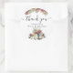 Agradeça com Estilo: Adesivo Redondo Clássico de Chuva de Noiva com Tipografia de Agradecimento e Flores de Primavera