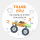 Obrigado Aniversário do Moderno Monster Car Trucks Sticker Labels apresenta o texto "Obrigado por vir ao meu partido" e personalizado com o seu nome com um carro monstro colorido. Fabuloso para as comemorações de festa de aniversário infantil. Projetado pelo Evco Studio www.zazzle.com/store/evcostudio
