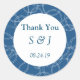 Adesivo de agradecimento azul e branco náutico moderno com padrão de bolhas.