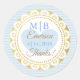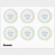 Adicione seus nomes e data de casamento a esses bonitos adesivos de casamento de cor azul e cor de pêssego dourado na área personalizada.
