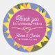 Agradecimento de casamento moderno - retrô, boho, elegante, floral colorido, amarelo, rosa e azul, adesivo para lembranças com corda dourada falsa em forma de coração, girassol e letra trendy.