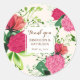 Obrigado de casamento que você cola retrata um lindo design floral de aquarela com flores de trevo rosa e vermelho e verde. Ele apresenta nomes de noiva, noiva e data.