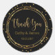 Adesivo de agradecimento com efeito dourado padrão circular entrelaçado e confetes de bolinhas. A cor do fundo pode ser alterada.