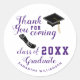 Crie adesivos personalizados de graduação brancos e roxos da classe 2025 com Obrigado por vir dizendo, e bonés de formando e ilustrações de diploma. O design de modelo facilita o tipo do nome do formando e um ano antes do pedido.