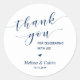 Obrigado por comemorar conosco. É um adesivo perfeito para ser usado em seu casamento ou outra celebração, por exemplo, Festa de aniversário, comemoração de aniversário, Chá de fraldas, ensaio de casamento, presentes para convidados, autocolantes e outros. Fonte azul Marinho.