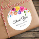 Vestidos de casamento de flores silvestres coloridas e elegantes com lindas flores e folhas. Expresse sua gratidão em estilo com este obrigado de casamento chic e brilhante e colorido, seu adesivo redondo clássico. Adornada com uma vibrante gama de flores silvestres rosa, amarelas, laranja e roxas, este design irradia calor, alegria e beleza natural. A elegante tipografia adiciona um toque refinado, fazer perfeito para selar cartas de obrigado-você, personalizar favores de casamento, ou adicionar um detalhe decorativo à embalagem de presentes. Ideal para casamentos boêmicos, jardins, rústicos ou ao ar livre, este adesivo floral é uma maneira charmosa e na moda para mostrar apreço aos seus convidados.