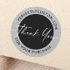 Obrigado de negócios elegante para você para seus adesivos de compra com o texto "obrigado você" em uma fonte branca, manuscrita, sobre um círculo preto, com papel de cinza impresso e borda. Altere as fontes, mova e redimensione o logotipo e outros elementos com a ferramenta design.