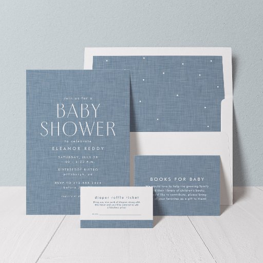 Obrigado os convidados do chá de fraldas com este adesivo simples e giro azul-câmara personalizado. Apresentando o tipo branco (obrigado que você não é editável, mas o texto menor é) em um plano de fundo com um efeito de chambray (observe - nenhuma textura real aqui), este adesivo é perfeito para os favores do chá de fraldas e muito mais. Projetado para coordenar com a coleção de chás de fraldas Chambray de Lea Delaveris Design, esse adesivo de favoritos para chás de fraldas pode incluir nome, data e muito mais. Encontre convites para chuveiros de bebês de chambray, suprimentos de festas e muito mais na coleção.