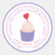 Agradecimento moderno por tornar o dia dos namorados tão doce adesivo para crianças, sacolas de brindes, para festas, para professores em roxo e rosa com xícara de bolo gráfico.