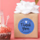Um adesivo personalizado de 3 polegadas "feito com amor, obrigado você" em um fundo azul brilhante colorido. Faça-o seu adicionando seu próprio nome. Um toque bonito para todos os presentes feitos à mão e feitos em casa. Apresenta-se também num tamanho de 1/2 polegadas. Perfeito para clientes obrigados em seu negócio de artesanato doméstico. Projetado para você pela Blackberry Boulevard