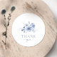 Adicione um toque final gracioso aos seus presentes ou lembranças com este adesivo elegante de "Obrigado". Com suaves flores em tons de azul desbotado em aquarela e tipografia clássica, é perfeito para casamentos, chá de noiva, chá de bebê ou qualquer ocasião de coração. Ideal para selar envelopes, sacolas ou caixas com estilo e gratidão.