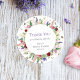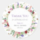 Bonito, elegante e moderno, este desenho de adesivo de agradecimento redondo para chá de panela de noiva apresenta lindas flores cor-de-rosa e roxas com borboletas e abelhões voando ao redor.