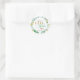 Grinalda floral desenhada à mão com margarida amarela e flores e folhas azuis minúsculas, com a mensagem "O amor cresce aqui" perfeita para adesivos de produtos, adesivos de lembrancinhas de casamento, adesivos de chá de noiva, adesivos de anúncio de gravidez, adesivos de aniversário de bebê. A mensagem "Obrigado", nomes e data podem ser facilmente editados e personalizados.