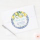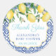 Obrigado por adesivos por qualquer evento (mostrado aqui para um Chá de fraldas, mas todos os campos de texto são personalizáveis). O design apresenta limões aquarelas sobre um fundo de um design azulejo branco e azul-vintage.
