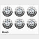 A design apresenta um par de skates de gelo sobre uma crista de floco de neve e um fundo de padrão tartano esbranquiçado. Este elegante design de esportes de inverno serve como um obrigado bonito, moderno e único que você cola para festas de patinação no gelo e muito mais!