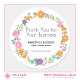 Promova sua pequena empresa em envelopes, pacotes e itens de promocional com esses adesivos com uma coroa floral colorida e texto personalizável para um obrigado que você envia, nome da empresa, slogan e endereço do site. Esta design é moderna e minimalista, e é uma forma excelente de obrigado dos seus clientes para os seus negócios. Modifique as quatro áreas de texto para ajustado das suas necessidades.