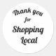 Este arrojado adesivo comercial local mostra as palavras "Obrigado por comprar local" em uma cursiva ousada. É um adesivo de excelente para Pequenas Empresas no sábado ou aquele obrigado extra para o cliente para comprar local.