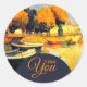 Obrigado adorável, escolha estilo redondo grande ou pequeno. Cintura tropical, verão brilhante, pintura náutica náutica da ilha em amarelo-ouro, cor de laranja, roxo profundo e tons azuis-rosados.