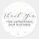 Diga 'Obrigado por apoiar nosso negócio' aos seus clientes com este simples e elegante. Obrigado por colar em cores modernas e modernas com pequenos pontos de ouro