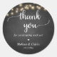 Obrigado por comemorar conosco, adesivo Rustic round round round, em 'kalkboard' rústico, luzes de cordas.