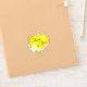 Grande coração amarelo e laranja feito com mel doce. No fundo do coração estão três bonito flores brancas e duas abelhas amarelas e negras coletando pólen em pequenos baldes. Na escrita negra em todo o coração estão as palavras Obrigado.