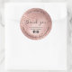 Adicione um toque pessoal aos seus pacotes de negócios com este luxo Obrigado Rosa, Dourada, Imprima o adesivo clássico redondo, apresentando uma textura de ponta-leopardo brilhante no fundo do rosa de ouro e as palavras Obrigado num belo roteiro escrito à mão. Ele é personalizável com seu nome de marca, endereço de site e contas de mídia social. Não hesite em contactar-me para obter ajuda na personalização ou se precisar de qualquer outro produto com este design.