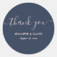 Elegantes adesivos de agradecimento de casamento personalizados em azul marinho e rosa com uma fonte de letra moderna. Itens correspondentes disponíveis.