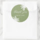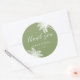 A Palma Verde Tropical Tropical Obrigado A Vestir Clássica Arredonda Clássica De Casamento apresenta um design delicioso mostrando palmeiras verdes, evocando uma sensação de paraíso tropical. Perfeito por adicionar um toque de encanto exótico para agradecer as notas e os favores do casamento.