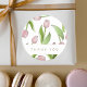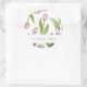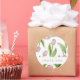 O design do produto apresenta um padrão de flores de tulipa rosa. Esta ilustração botânica com texto personalizado torna adesivos modernos e únicos para aniversário, Páscoa, Dia das Mães, chá de noiva, casamento e muito mais - OBRIGADO.