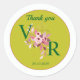Elegante obrigado de casamento... com a frase "Obrigado", as iniciais da noiva e do noivo com um elemento floral no meio, e a data do casamento. Perfeito para selar caixas de presentes, favoritos para festas ou cartões de obrigado. Este design romântico e clássico adiciona um toque personalizado ao seu dia especial. Totalmente personalizável para combinar com o tema do seu casamento.