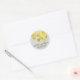 Adicione este belo adesivo aos seus favores de casamento para criar um obrigado muito especial para os seus convidados. A design de aquarela apresenta girassóis amarelos e rosas cercados por delicadas folhas verdes. Com amor e Obrigados é escrito abaixo em uma escrita formal e elegante. Os nomes da noiva e noiva estão escritos em letras maiúsculas modernas e a data do casamento está logo abaixo.