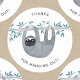 Design de tipografia de preguiça, de cor branca e branca. O texto diz Obrigados para sair e pode ser mudado para personalizar. Arte original de Nic Squirrell