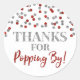 Obrigados para aparecer por um adesivo de etiqueta favorita com um confete de padrão de brilho prateado e vermelho. favores perfeitos de pipoca para casamento ou chá de fraldas.