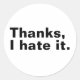 Adesivo Obrigados, eu odeio.